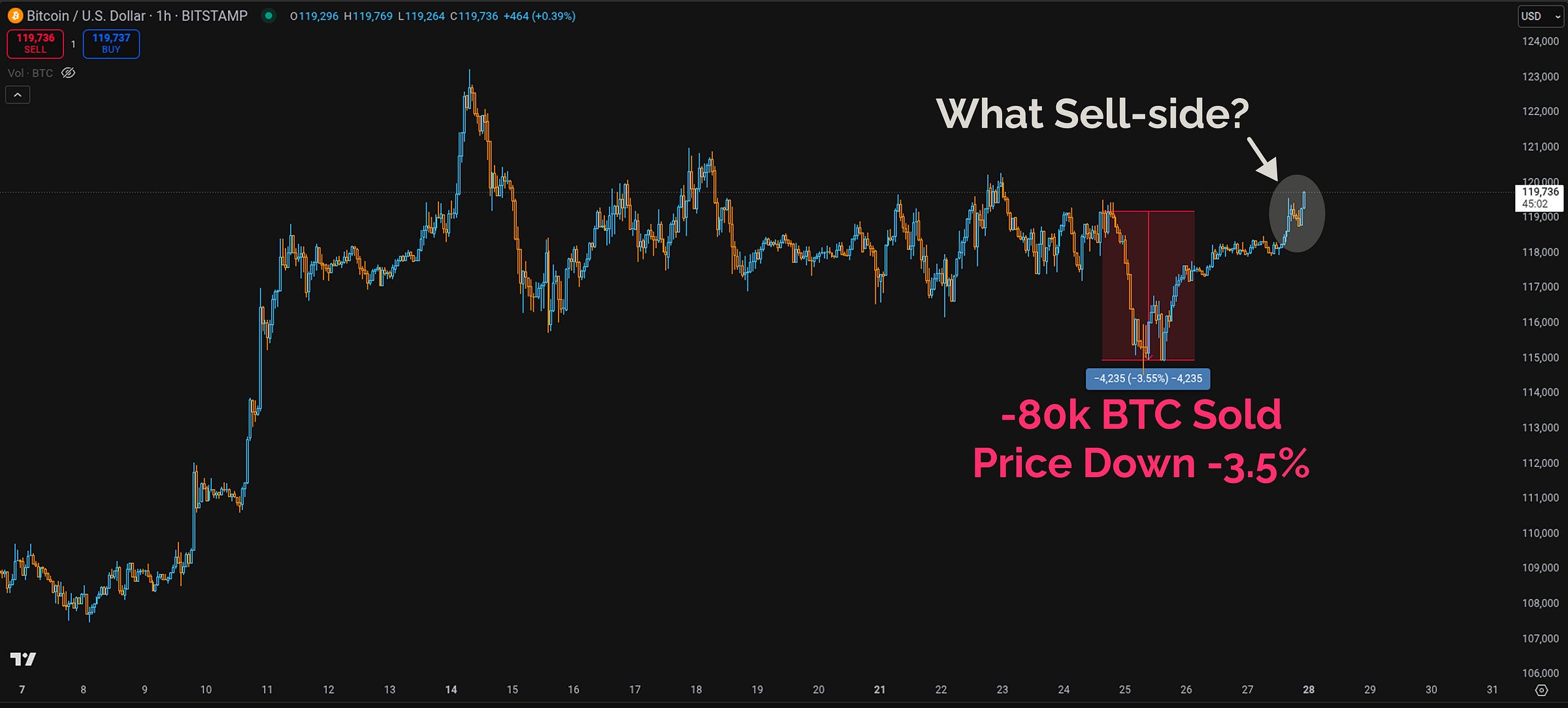 The Bitcoin market just absorbed the sale of eighty thousand BTC on a weekend, and the market barely flinched. If this doesn't send a signal for how resilient the demand profile is, what will?