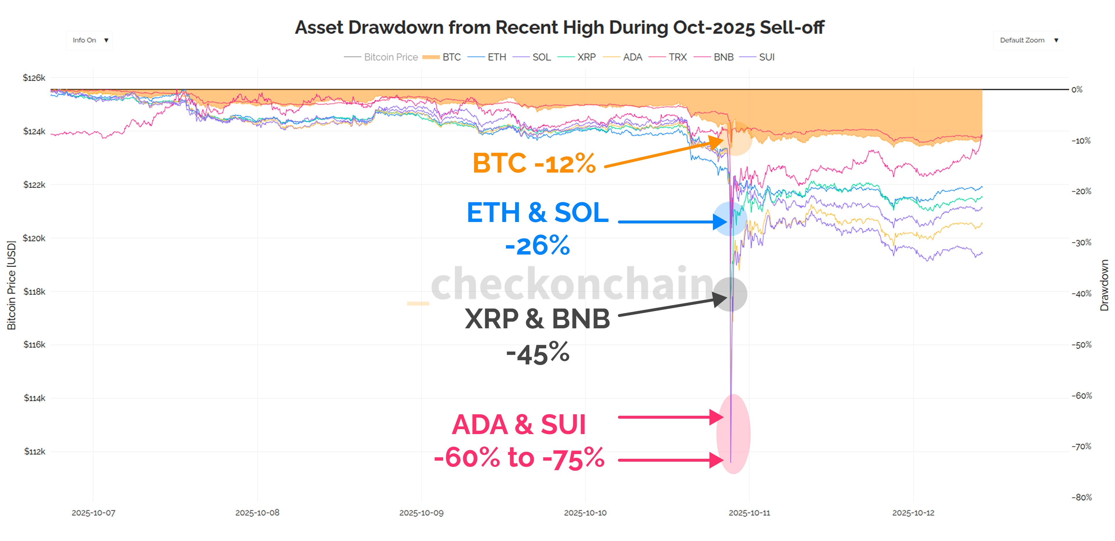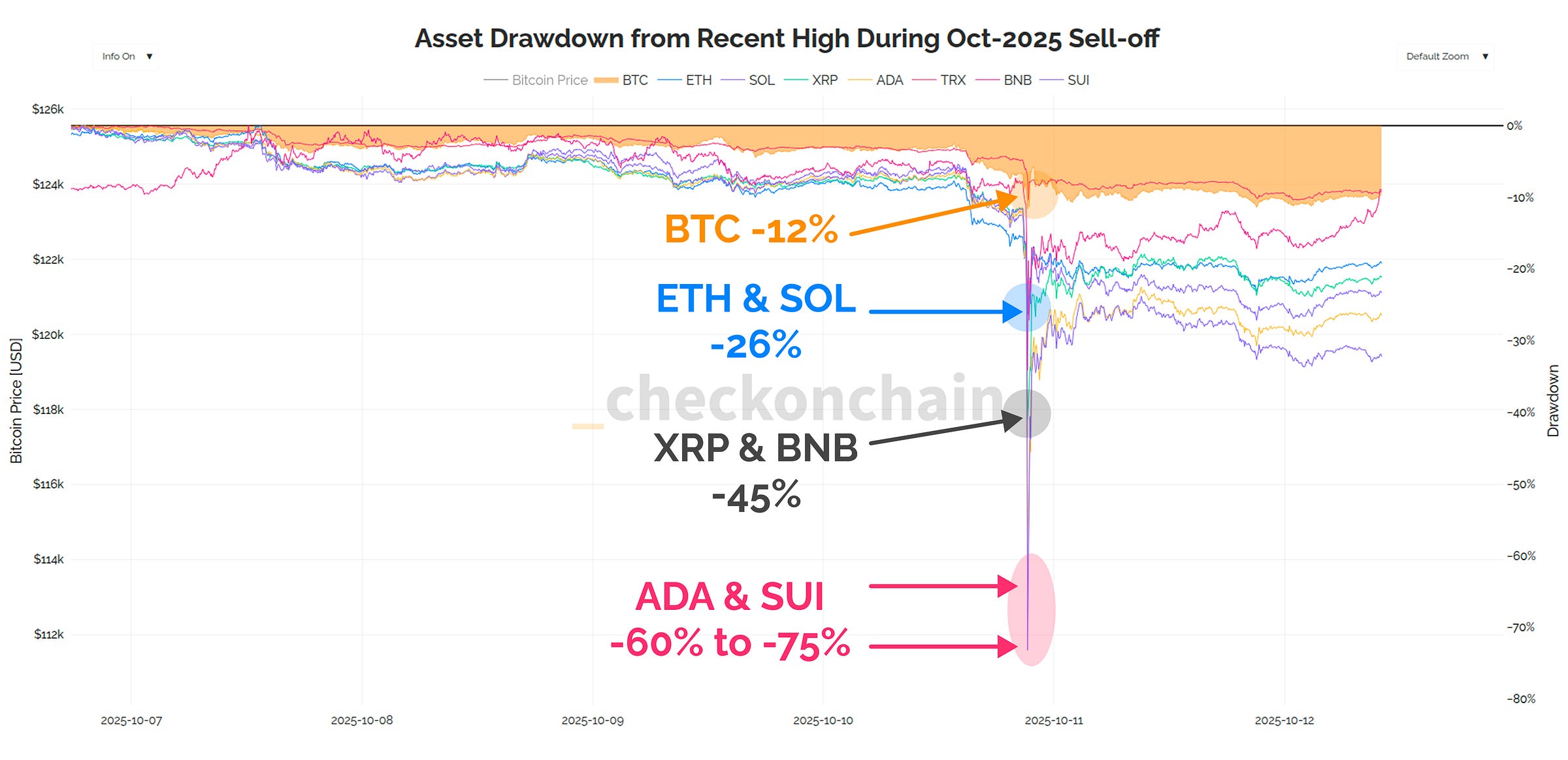 Whilst Bitcoin sold off -12%, many altcoins got massacred, with ETH and SOL trading down -26%, XRP and BNB cut in half, and SUI and ADA trading down -65% to -75%… and the price of some long tail assets literally went to zero!