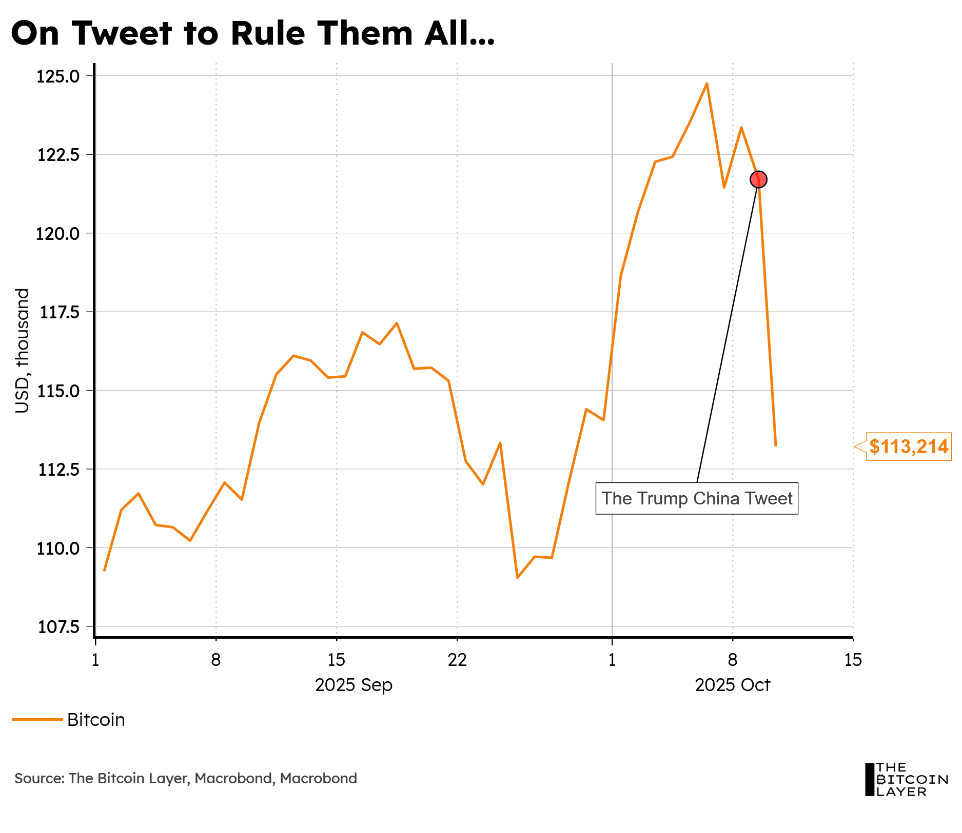 We are finally right in the middle of the long-awaited Uptober, and although bitcoin started the month on an extremely high note, President Trump had different plans (as the Checkonchain team highlighted in their analysis above):