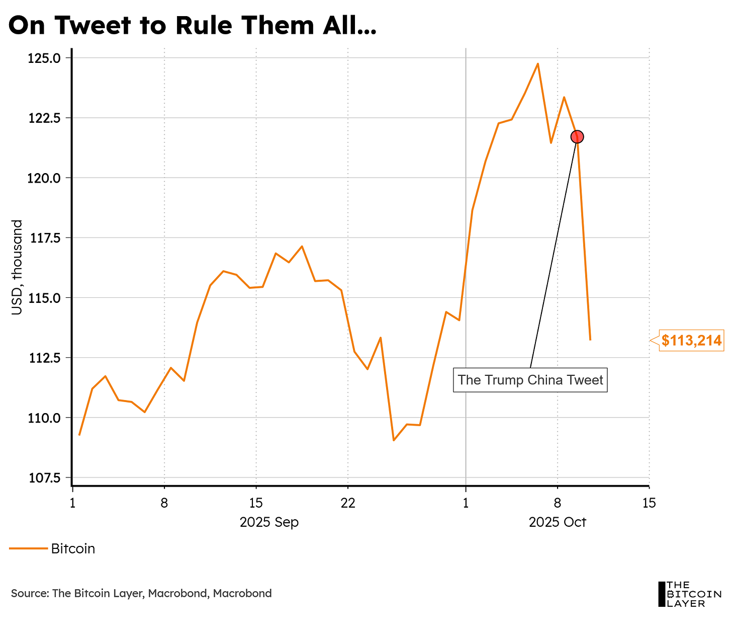 Bitcoin is one of the most sensitive assets to liquidity conditions, and even though this sell-off was arguably triggered by a Trump tweet about 100% tariffs with China, the impacts of such a thing would be felt market wide.