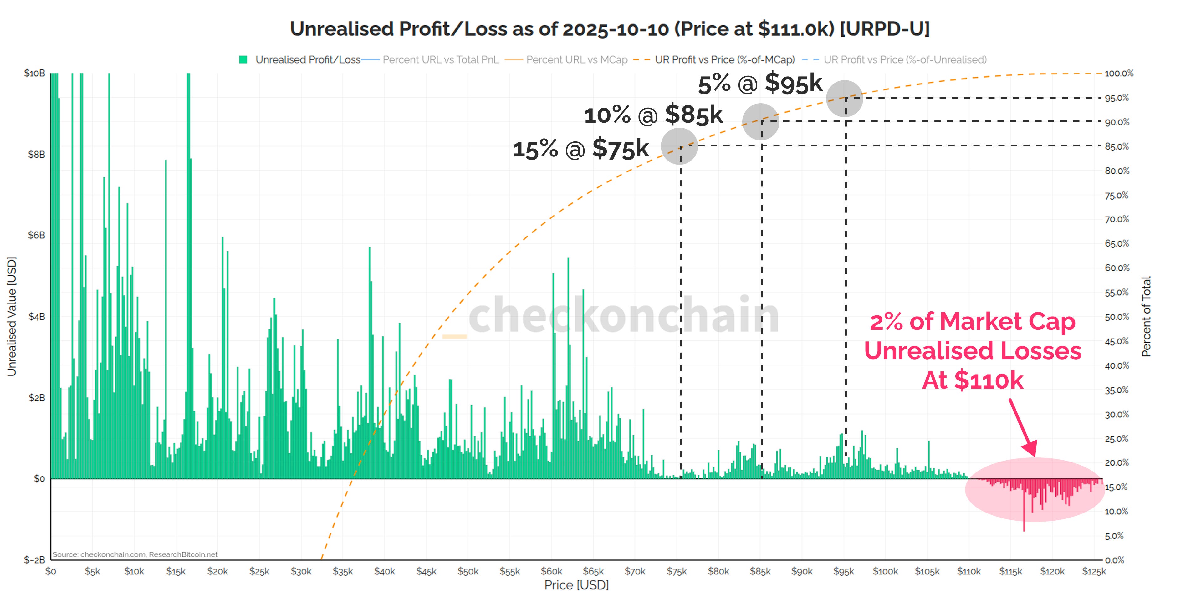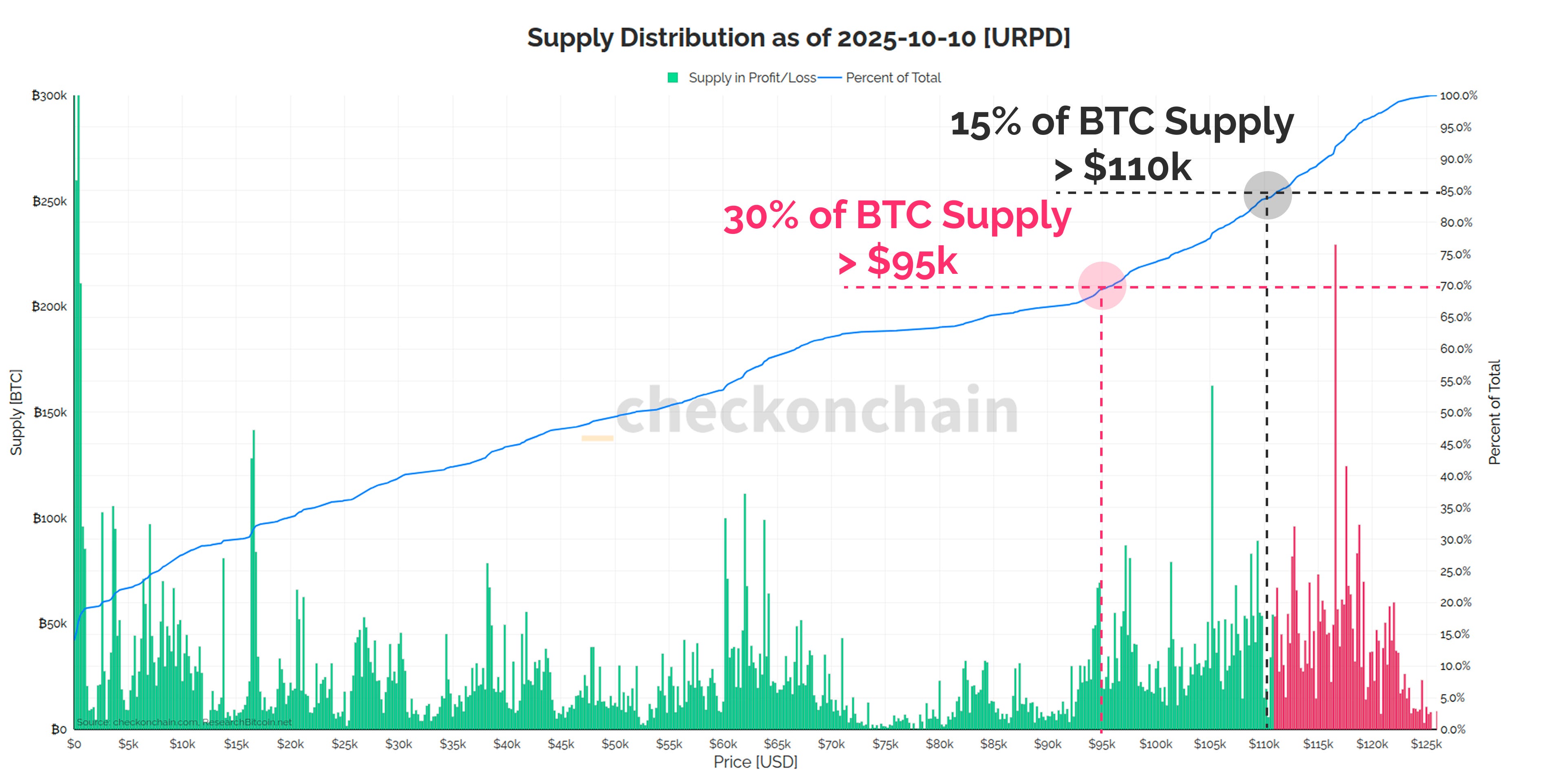 Over 30% of the Bitcoin supply has an onchain cost basis higher than $95k, and $15% of it was acquired above $110k.