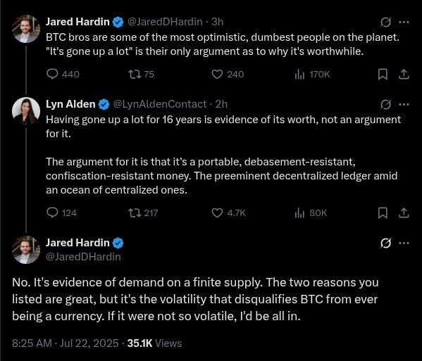 We encounter these arguments all the time in the wild, with one of the latest instalments on X shown below.