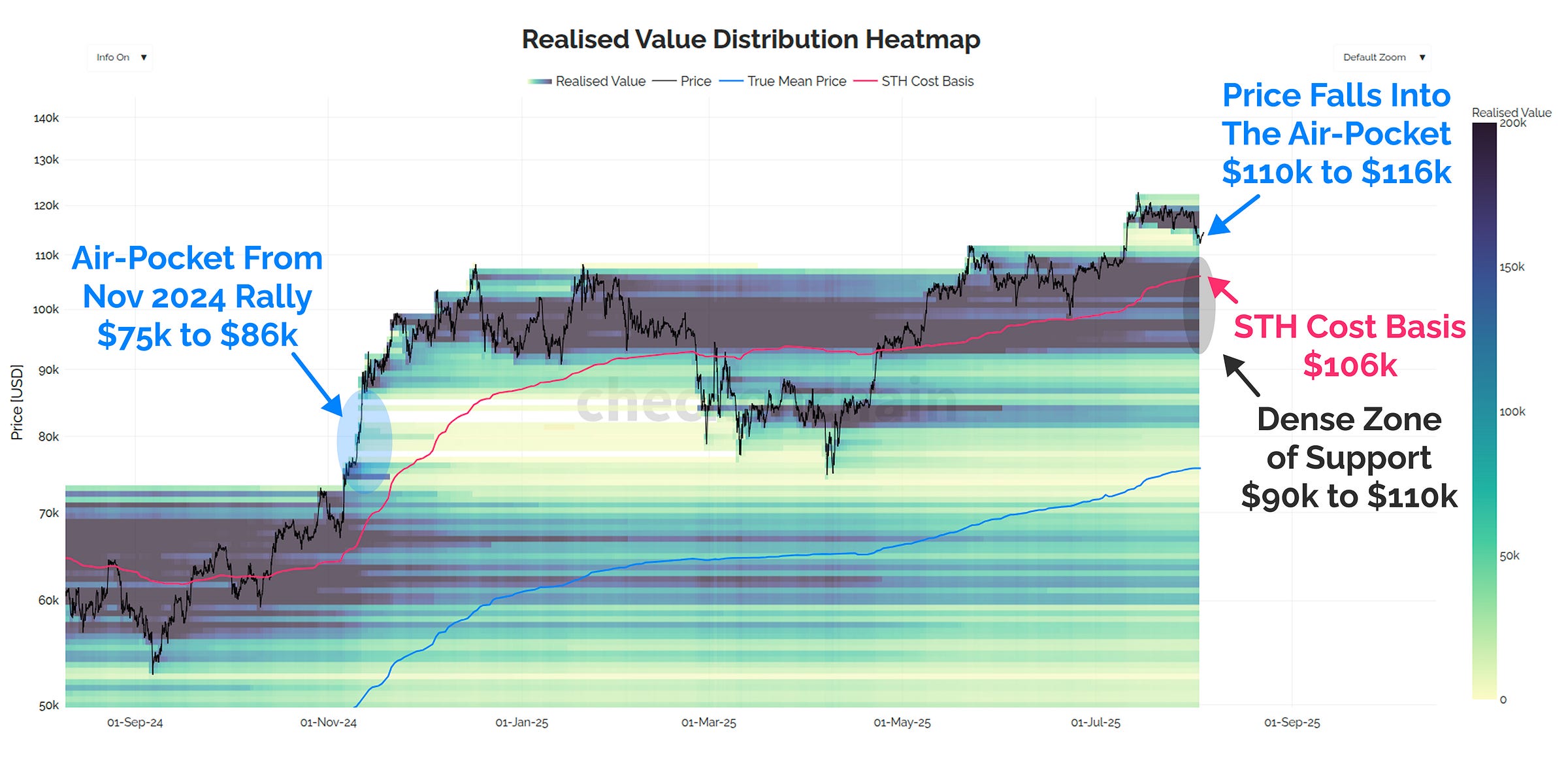 Nobody can predict the future, but we have been talking about the supply ‘air-pocket’ between $110k and $116k for a few weeks now (see latest report).