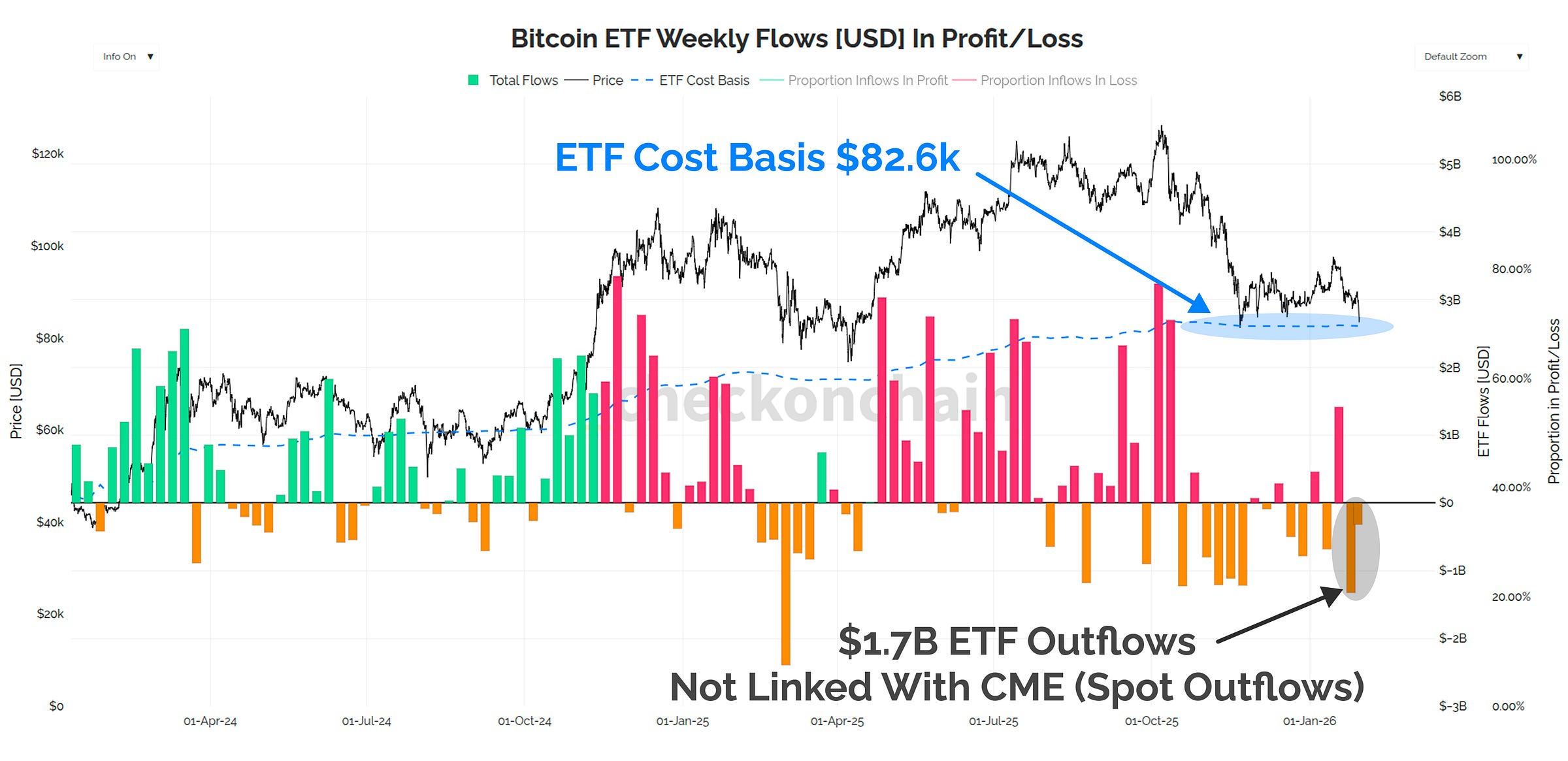 The average ETF inflow cost basis ($82.6k), and as it stands, over 60% of inflows have occurred at higher prices (thus assumed to be reflective of investors in loss).