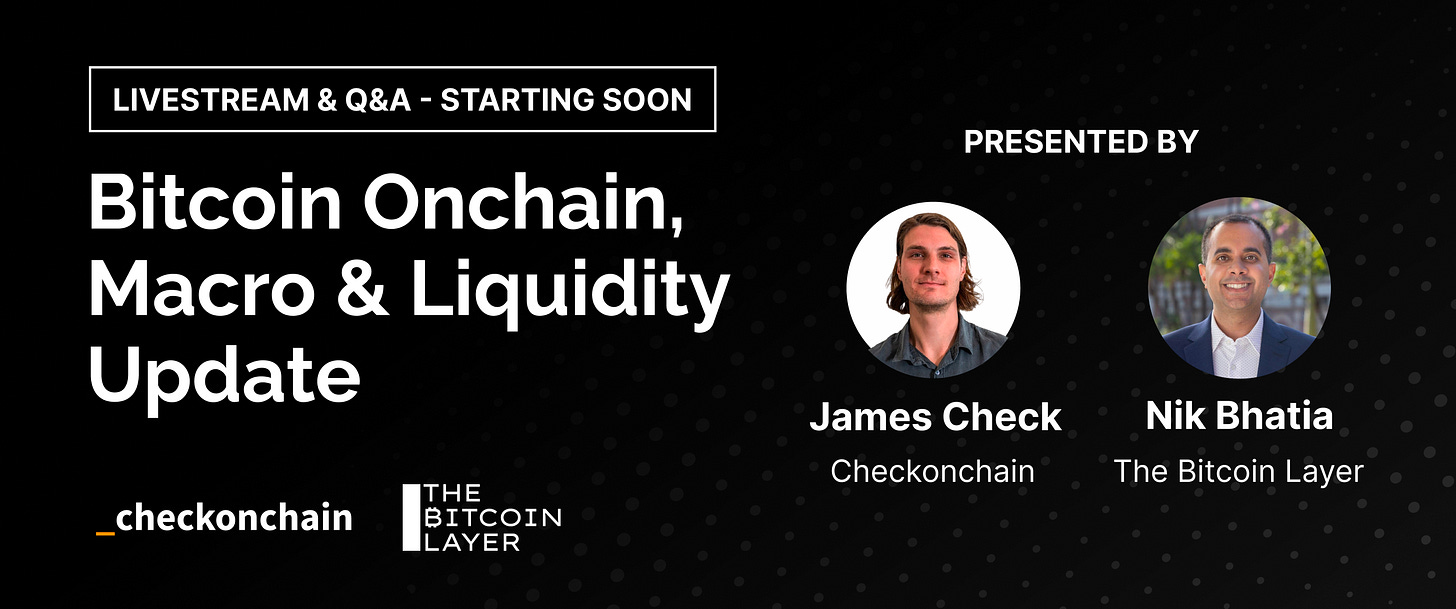 We’re going live with our friend Nik Bhatia from The Bitcoin Layer very soon, supporting our latest report published yesterday. We will be covering the fallout after the recent market sell-off, Macro, Liquidity, Onchain Analysis, and the stream will end with a Q&A where you can ask us anything.