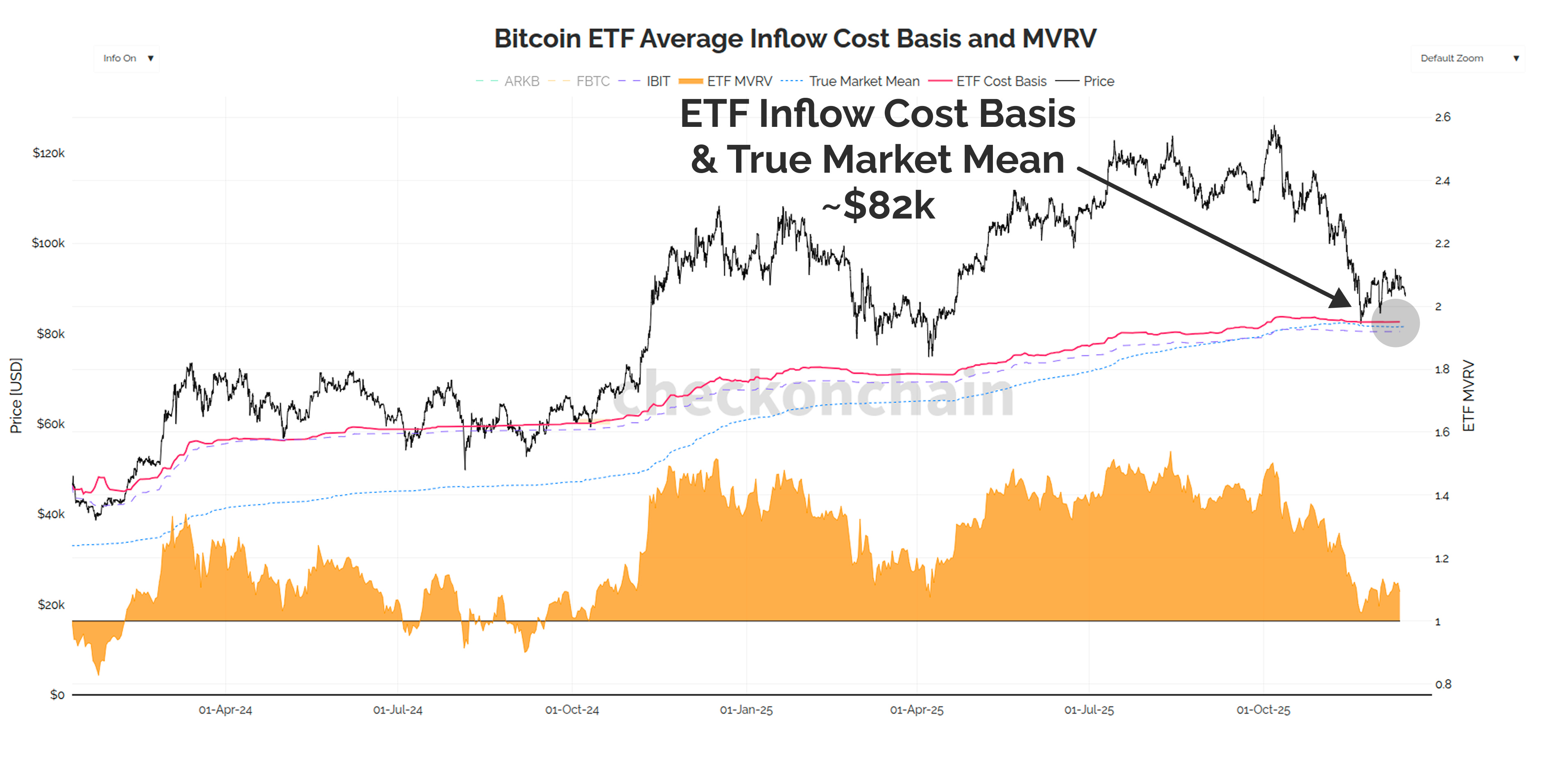 Add to this that Bitcoin is trading in what appears to be a bear flag, located right above the True Market Mean, and the ETF inflow cost basis.